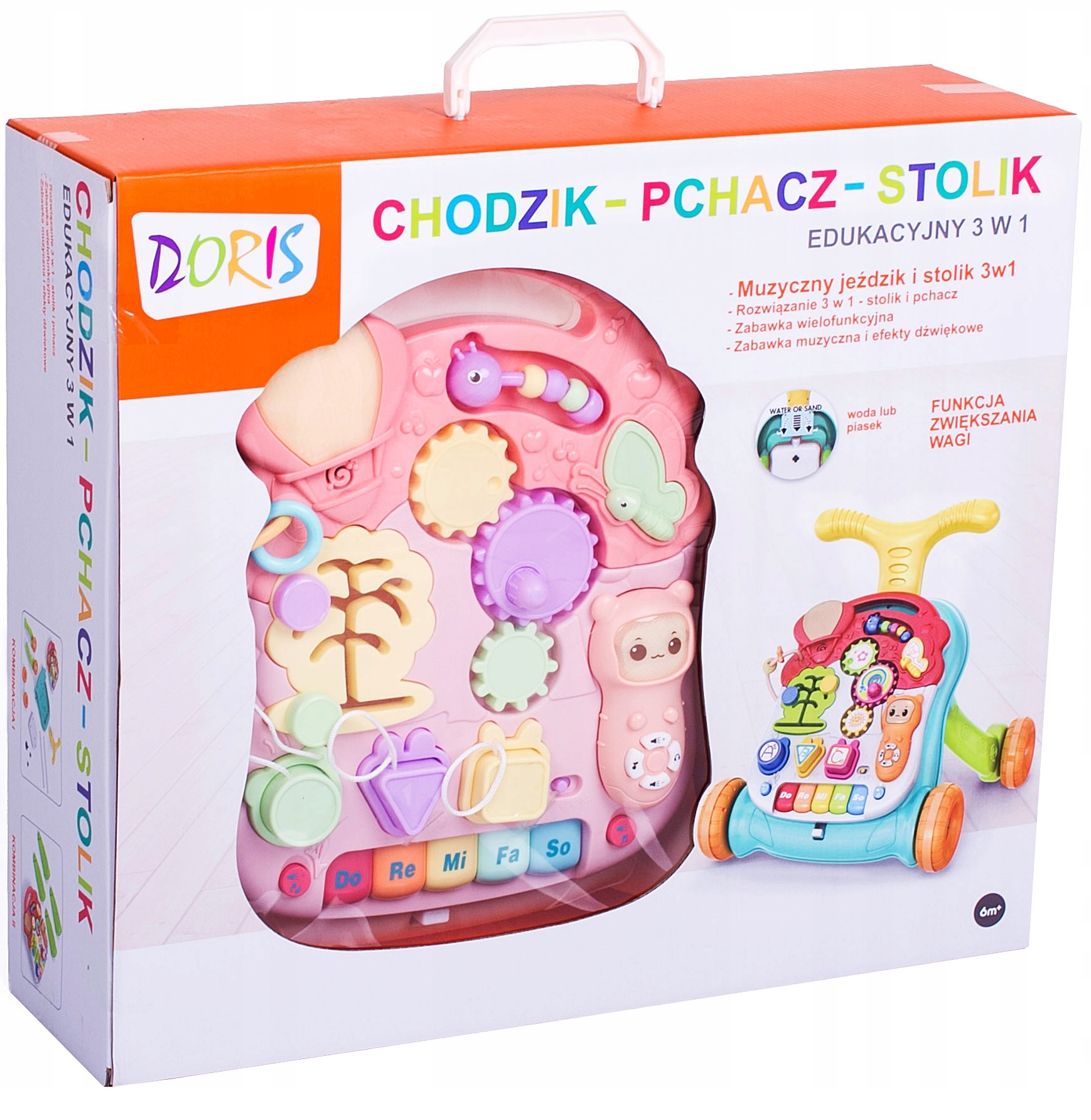 Calaretul prezentat, combinat cu panoul educational, afecteaza nu numai invatarea de a merge, ci sprijina dezvoltarea lingvistica, senzoriala si motorie a copilului si invata si forme, numere si litere. Un Walker educational cu un desktop de sunet interactiv este foarte usor de folosit si fold. Jucaria este ambalata intr-o cutie mare, estetica, de aceea este potrivita pentru un cadou pentru noii parinti.