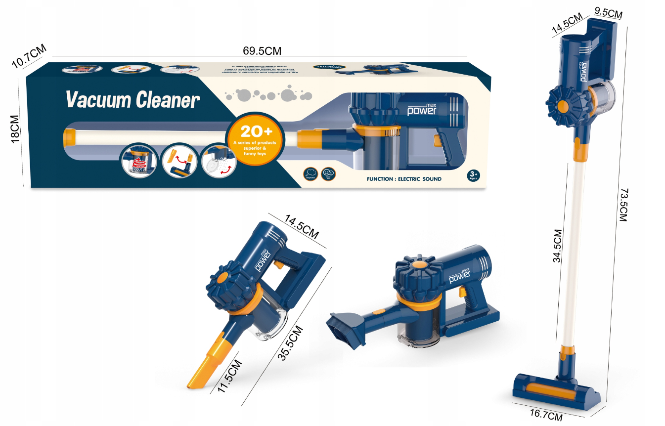 Aspiratorul imita munca unui dispozitiv adevarat, aspirand usor aerul si sorbind bilele de polistiren incluse in set. Dupa ce a aspirat, micutul tau poate goli cu usurinta recipientul!