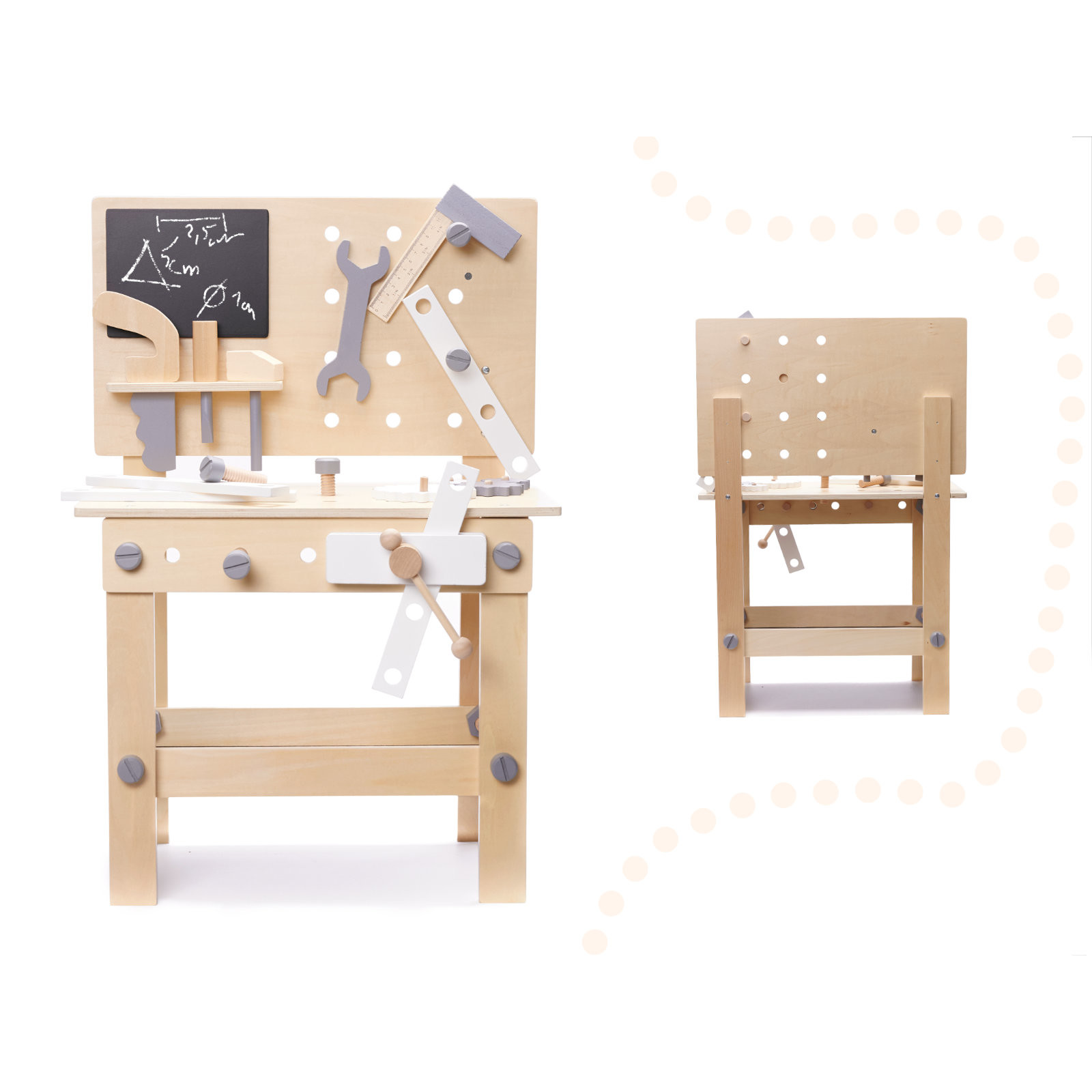 Un set frumos, mare, din lemn va fi un vis devenit realitate pentru fiecare mic pasionat de bricolaj.