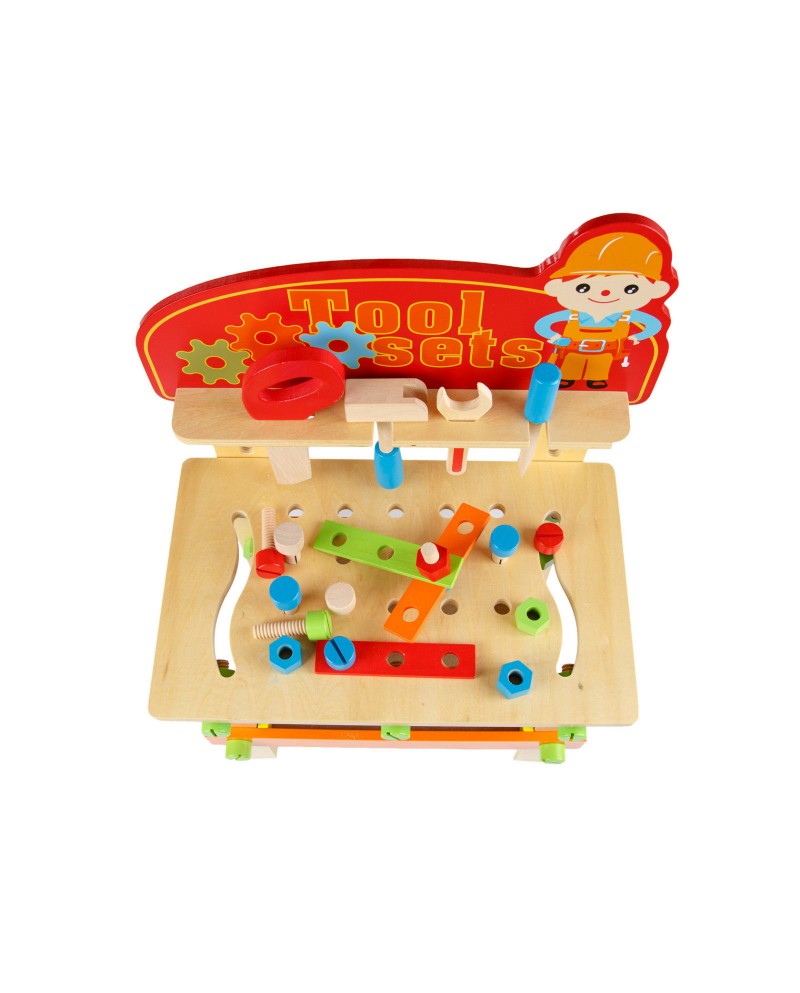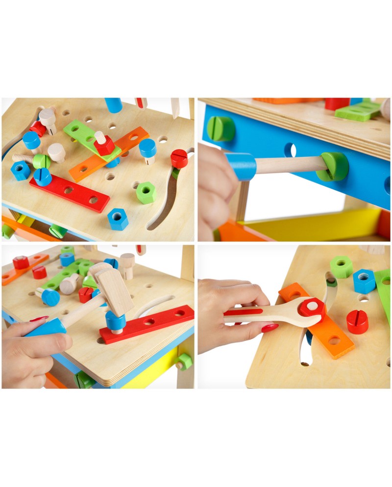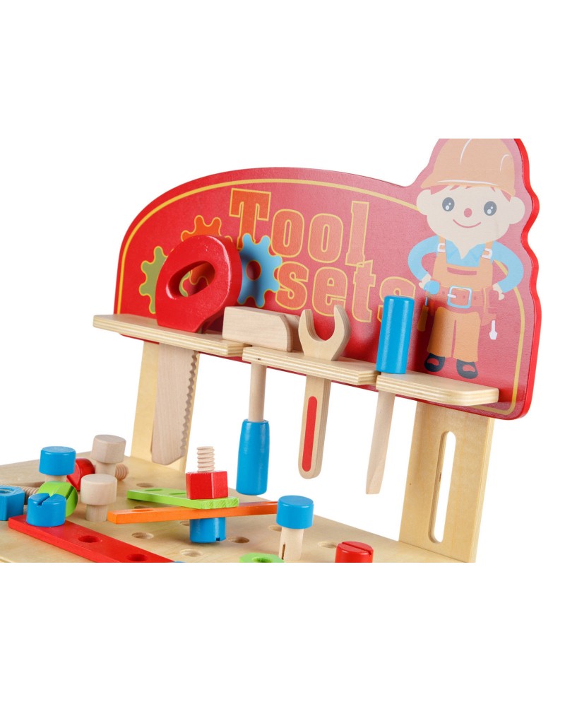 Banc de Lucru Lemn Natural 49 Unelte si Accesorii, 60CM Inaltime „Wood Tool Set”, pentru Copii, Dezvolta Inteligenta, Abilitati Motorii si de Comunicare