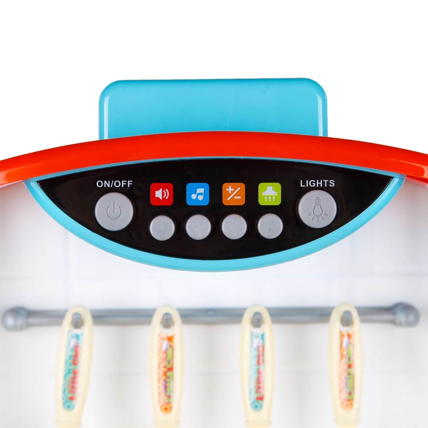 Butoanele pentru controlul aragazului sunt situate pe blatul superior. Plasat langa chiuveta cu un robinet – dupa ce se apasa apa curge ca la un robinet real.