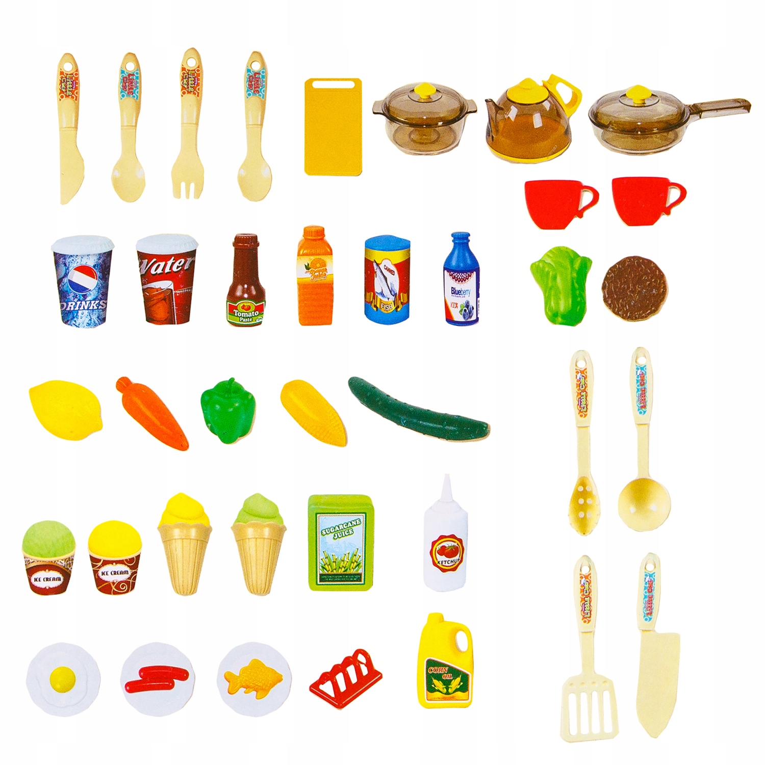 Accesoriile includ: vase, o farfurie, tacamuri, legume si cutii cu „mancare”.