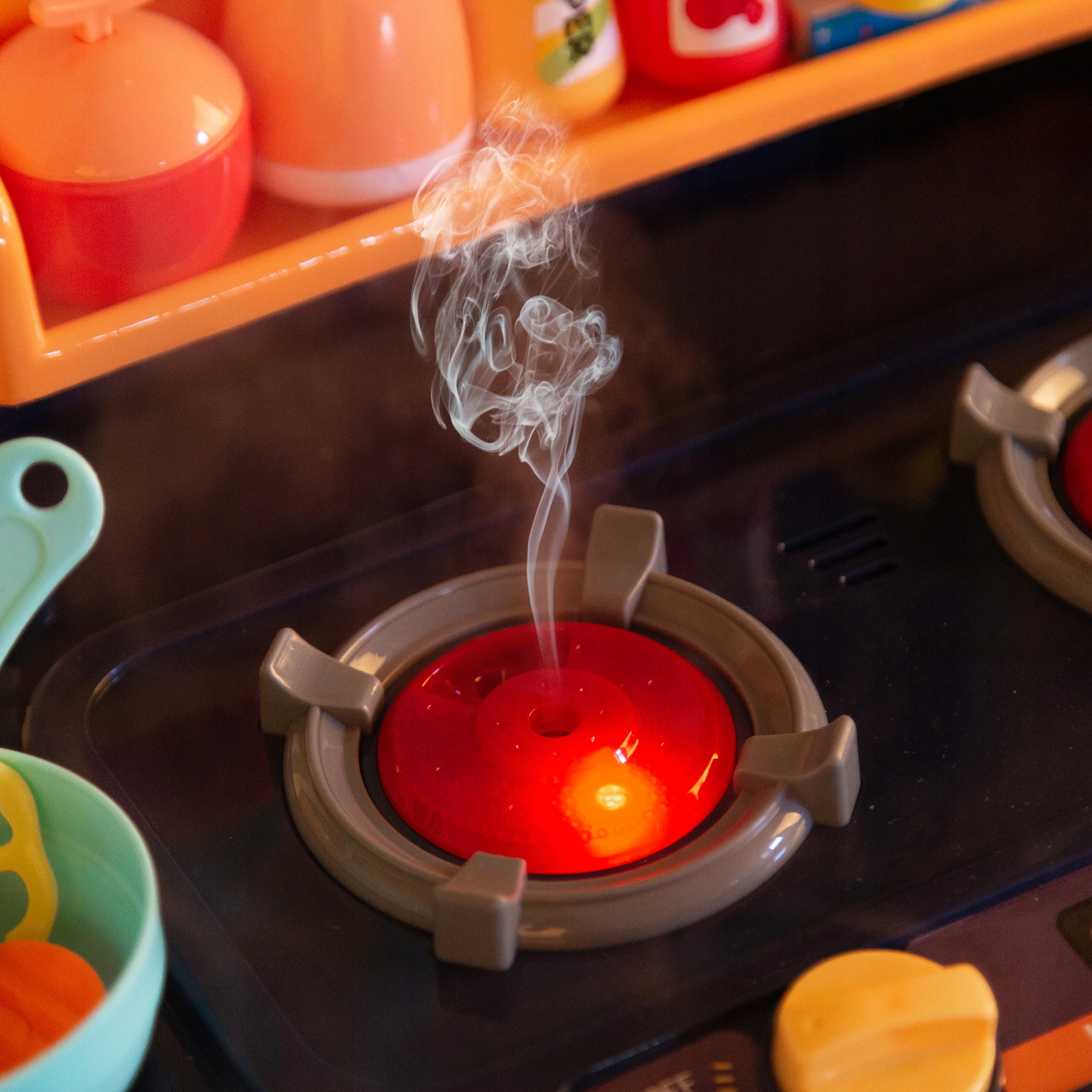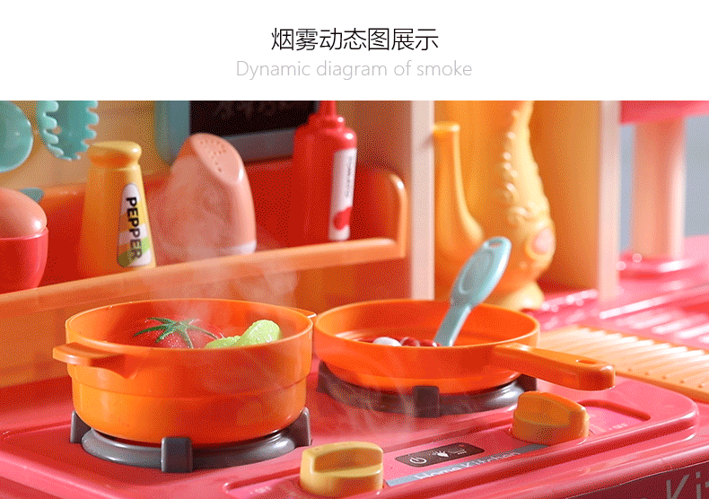 Bucataria va pulveriza apa si abur, iar efectele de iluminare si sunetele vor simula scena de gatit pentru copii si vor experimenta scena de gatit pentru a spori distractia copiilor in joc.