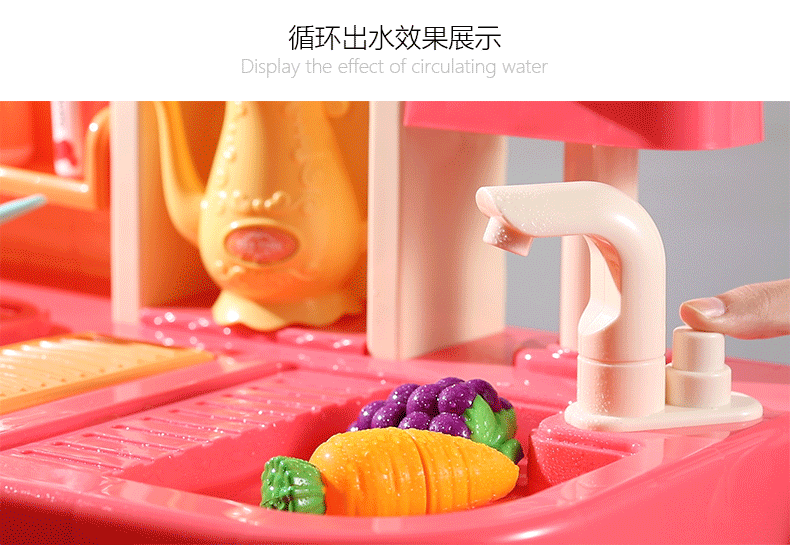 1. Bucataria va pulveriza apa si abur, iar efectele de iluminare si sunetele vor simula scena de gatit pentru copii si vor experimenta scena de gatit pentru a spori distractia copiilor in joc.