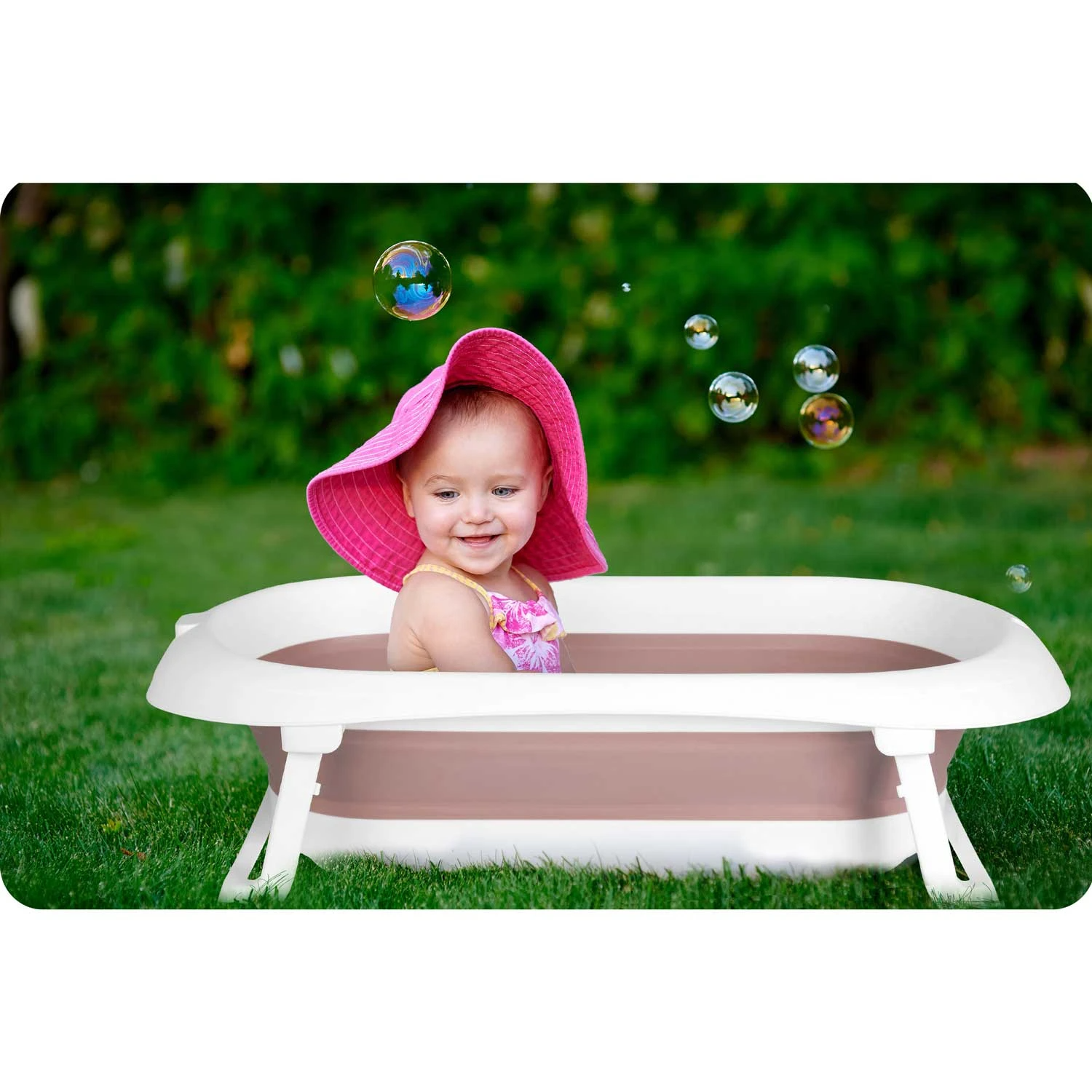 Cadita pliabila pentru Bebelusi „LikeSmart Baby Bath 28100”, Dop cu Senzor Temperatura pentru Evacuare, 45 kg, Pink
