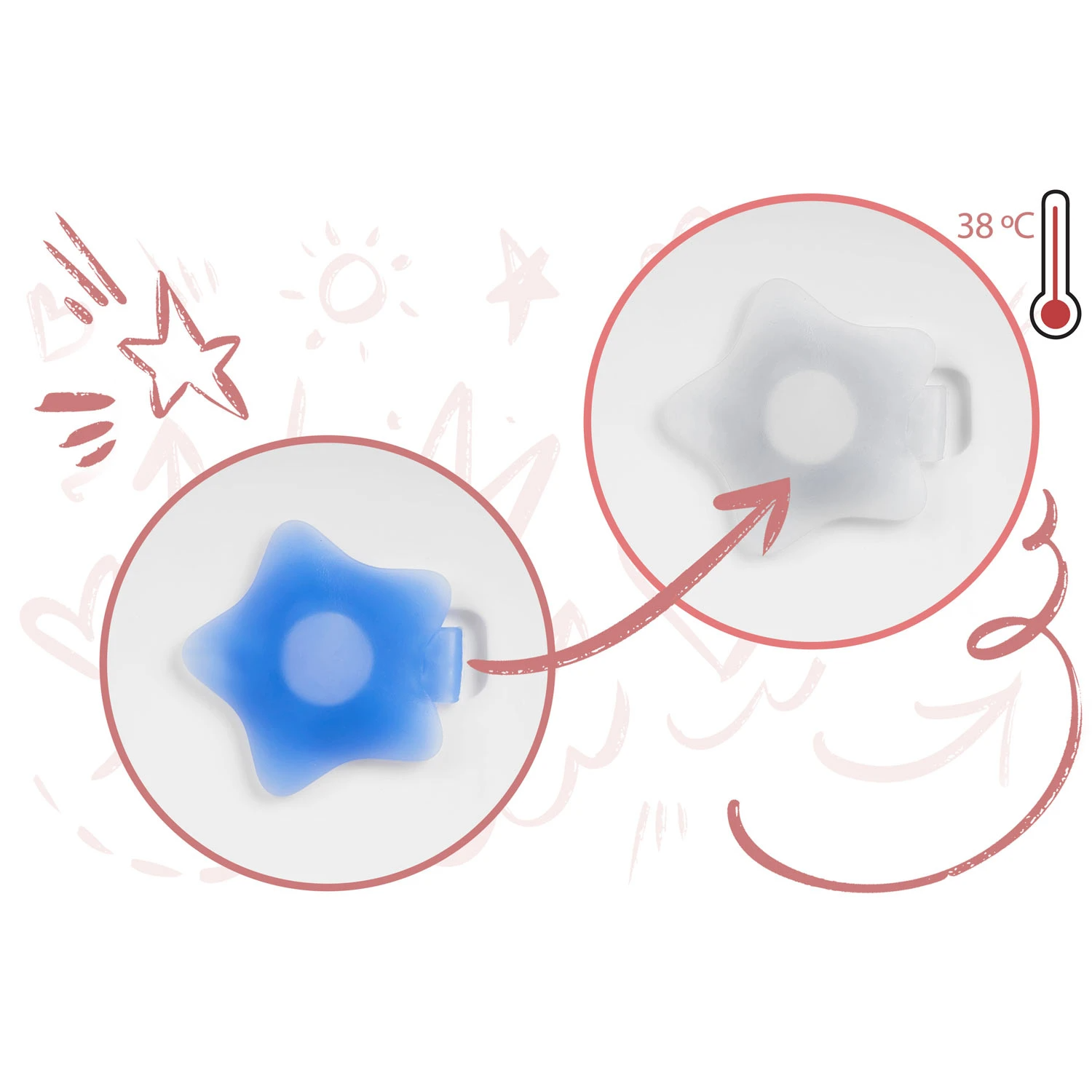 Dopul in forma de stea se va transforma din albastru in alb daca temperatura apei depaseste 38° C.