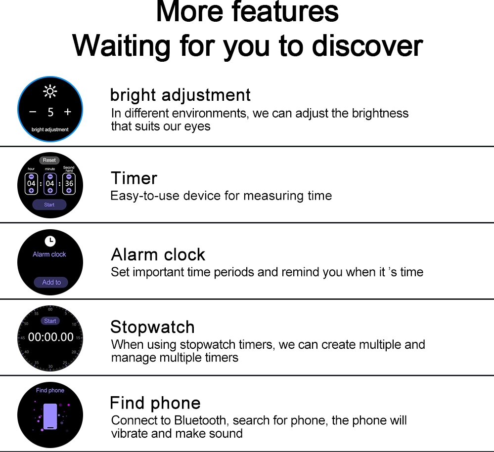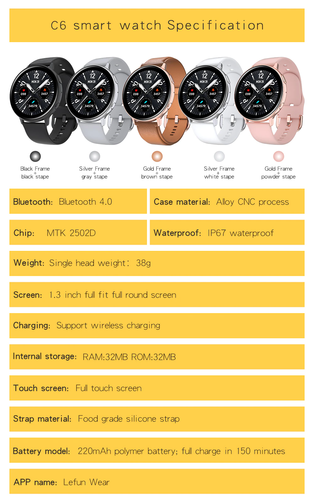 * Toate functiile, notificarile si setarile produsului se configureaza din aplicatia LEFUN WEAR ( ex: Ora , Notificari Mesaje si Apeluri, etc )