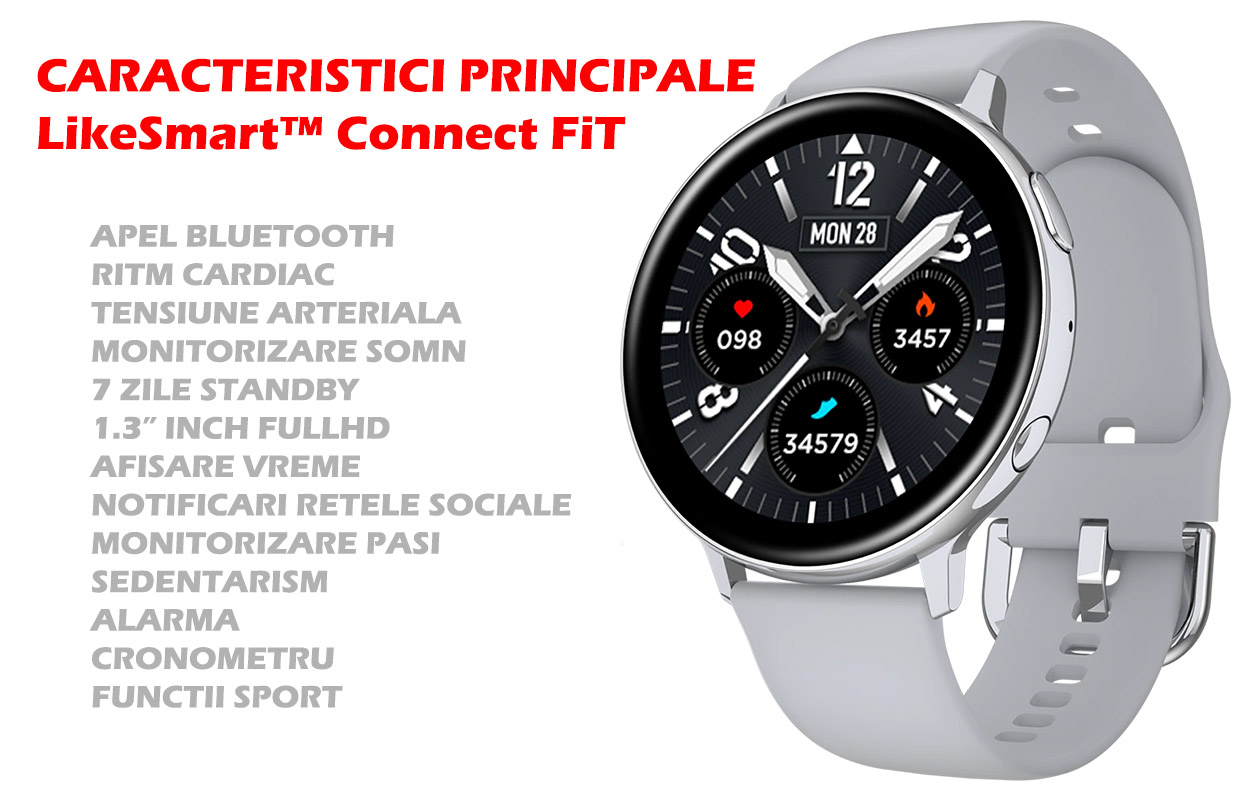Ceasul inteligent LikeSmart™ Connect FiT are numeroase functii. Puteti primi diferite notificari, monitorizati activitatile de fitness, activitatea de somn, ritmul cardiac, tensiunea arteriala si multe altele.