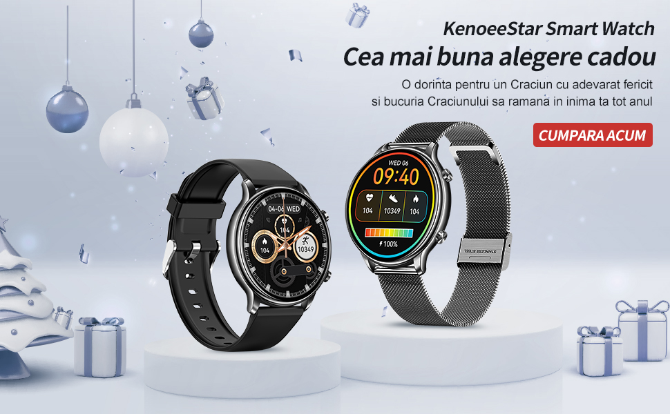 Kenoeestar smartwatch are multe fete de ceas preinstalate pe care le puteti schimba cu usurinta prin butonul rotativ sau direct din aplicatia FitCloudPro.