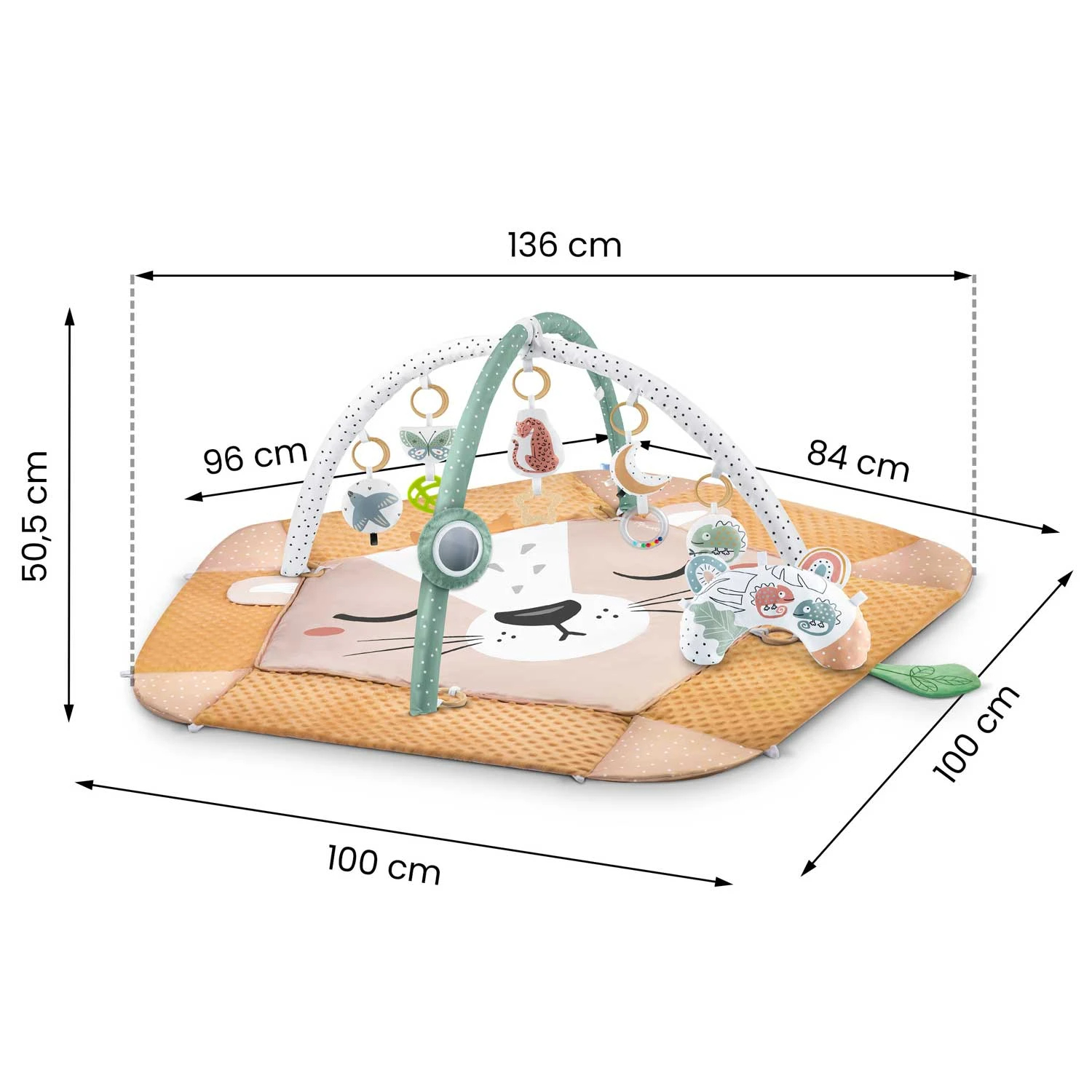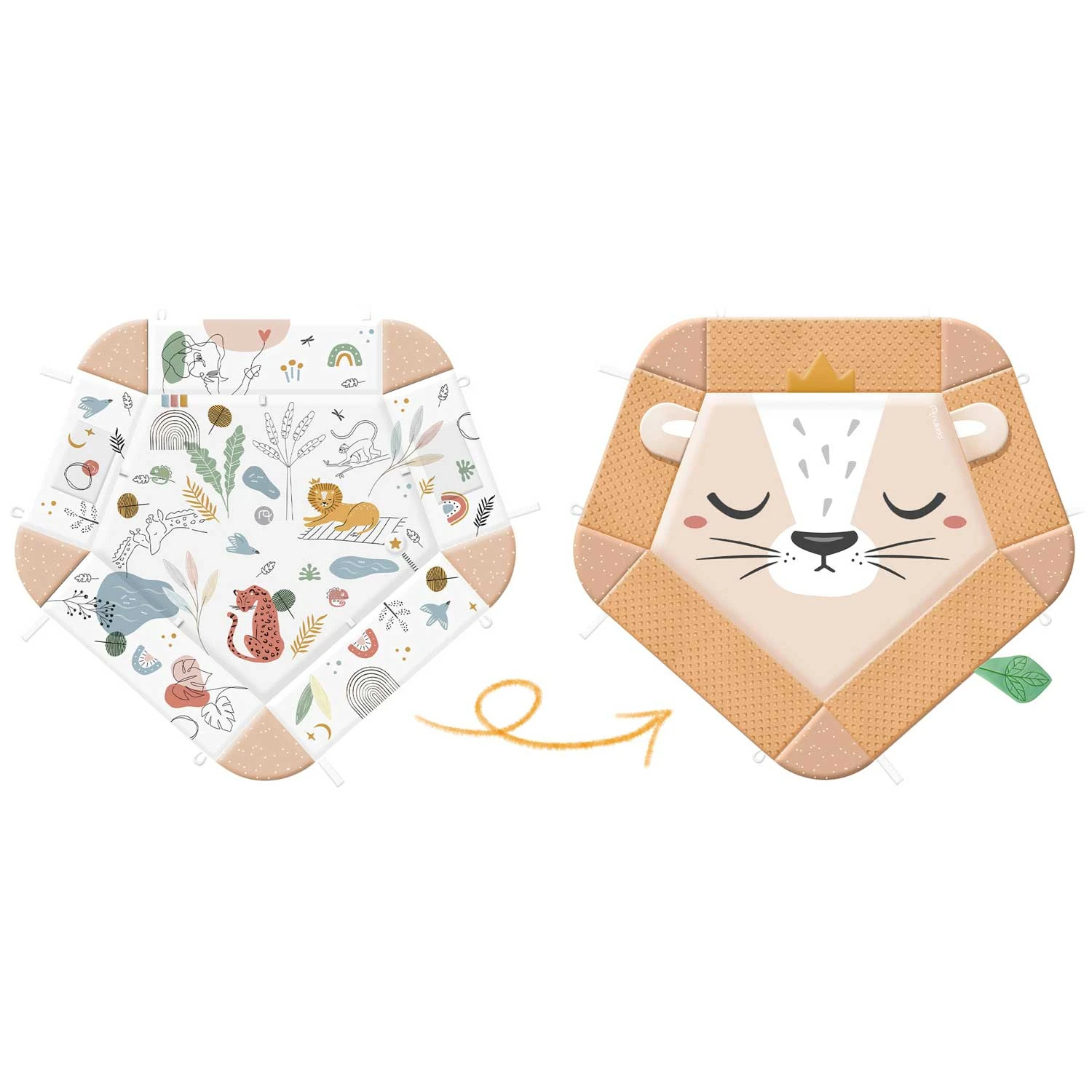 Centru de activitati 3 in 1 pentru copii si bebelusi ISP „Likesmart Nukido Lion”, 7 jucarii multifunctionale, pernuta, Maro