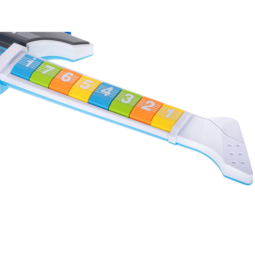 Butoanele de pe gatul chitarei marcate cu numere sunt folosite pentru a reda acorduri din gama selectata si pentru a reda melodii. Datorita acestui fapt, tinerii chitaristi se pot simti ca adevarati virtuosi!