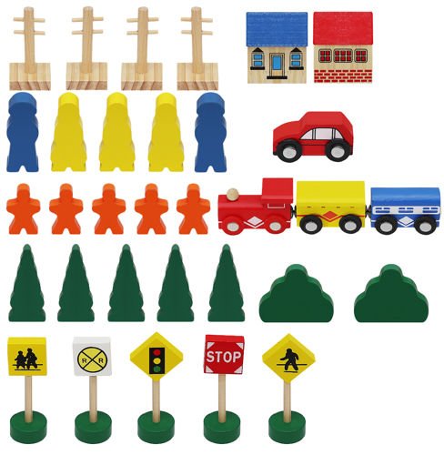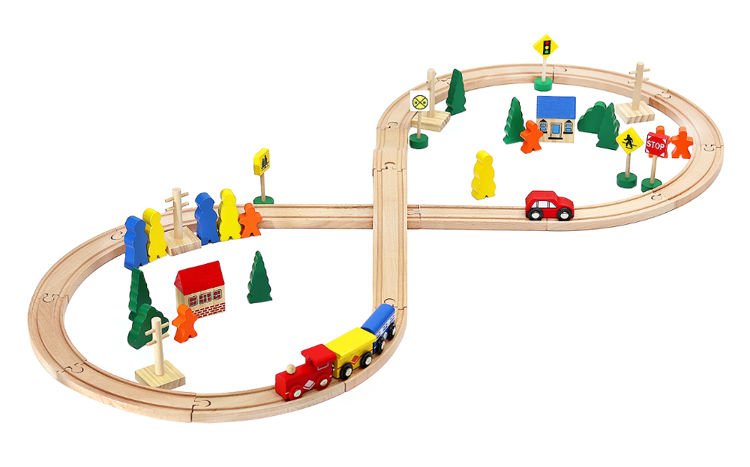 Setul de jucarii din lemn pentru copii este compus din 50 elemente pe care le puteti asambla in functie de preferintele dvs. Acestea sunt elementele de cale ferata, trenul, masinile de jucarie, semnele rutiere, copacii, casele si jucariile. Toate elementele pot fi asamblate cum doreste copilul. Mai multa creativitate inseamna mai multa distractie! Traseul poate fi asamblat intr-o bucla, astfel incat autoturismele pot circula fara sfarsit. Copiii nu se vor plictisi niciodata cu piesa – setul are un flyover cu un tunel! De-a lungul pistelor, copilul poate instala copaci mici, semne rutiere si alte accesorii. Plictiseala este indreptata datorita setului de jucarii din lemn!