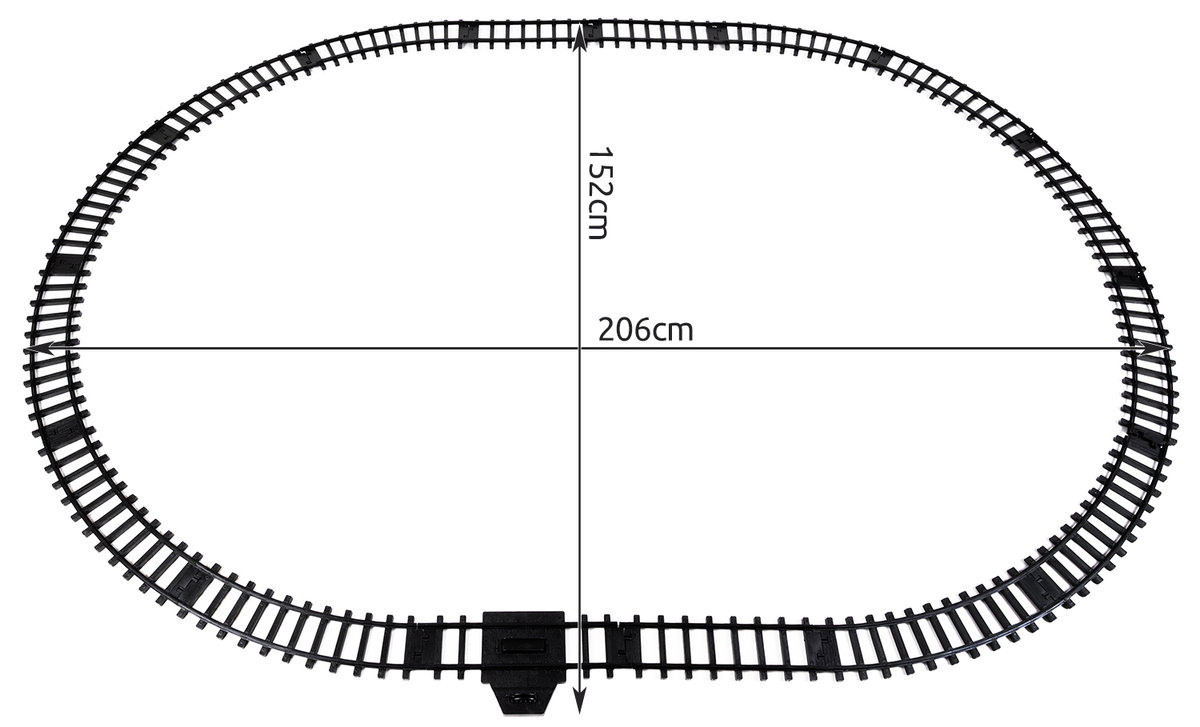 SPECIFICATII – material: plastic / metal; alimentare: 8 x AA (nu este inclus); lungime calea: 500 cm; dimensiuni (lungime / latime): 152x206cm; dimensiuni in pachet (latime / inaltime / adancime): 43 / 31,5 / 17 cm; greutate in pachet: 2,2 kg.