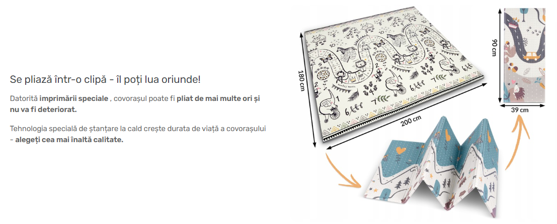Covor XXL Pliabil cu 2 fete, pentru copii, LikeSmart Nukido, Termic si Usor, Spuma Termoizolanta BPA FREE, 200×180 CM, 1 CM grosime