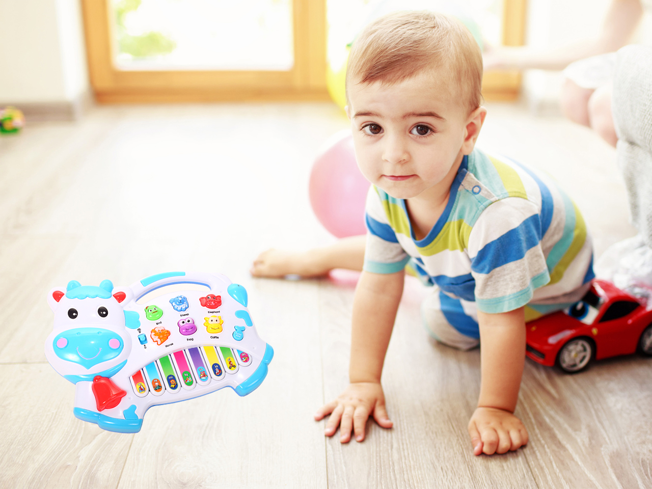 Jucarie interactiva bebelusi ISP „Piano Cow”, cu lumini si sunete