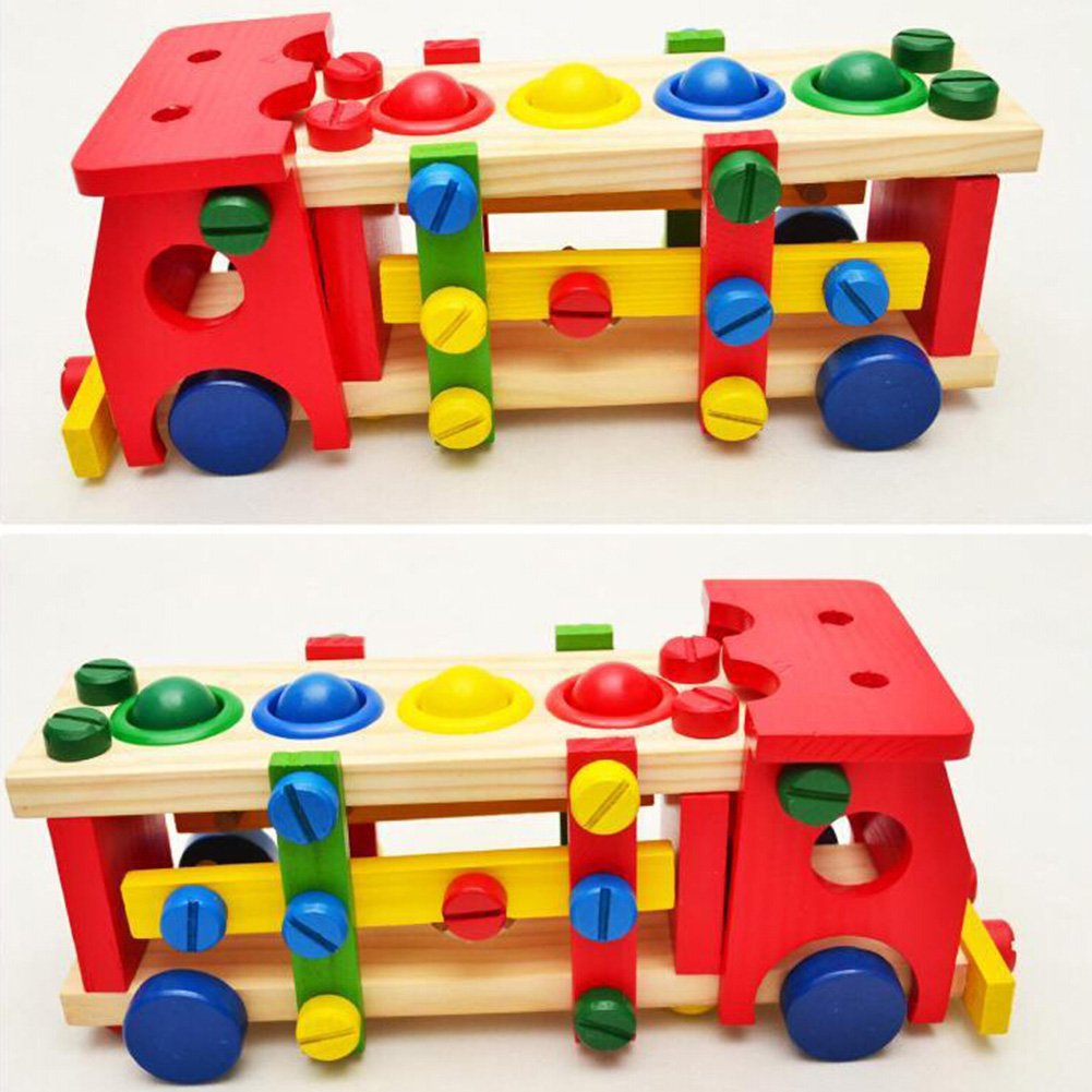 Jucarie Multifunctionala, Interactiva si Educativa din Lemn, tip masinuta, cu surubelnita, suruburi, si ciocan din lemn