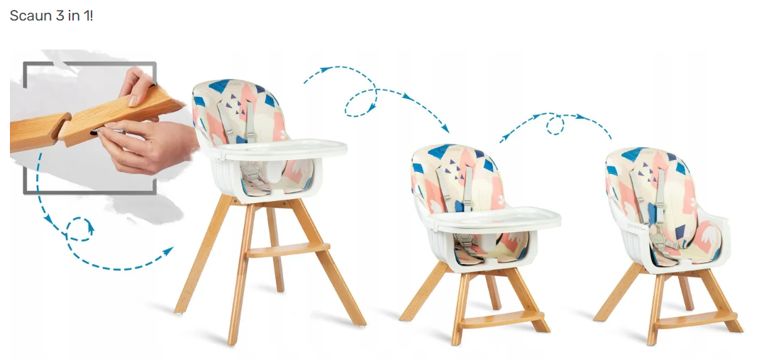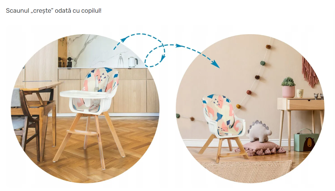 Scaun de masa multifunctional „LikeSmart Color Lilo Chair 3 in 1”, cu Tavita detasabila, Centura de siguranta cu prindere in 5 puncte, Colturi rotunjite, Husa detasabila si lavabila, Multicolor