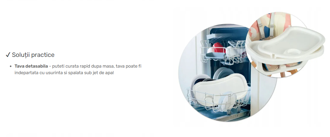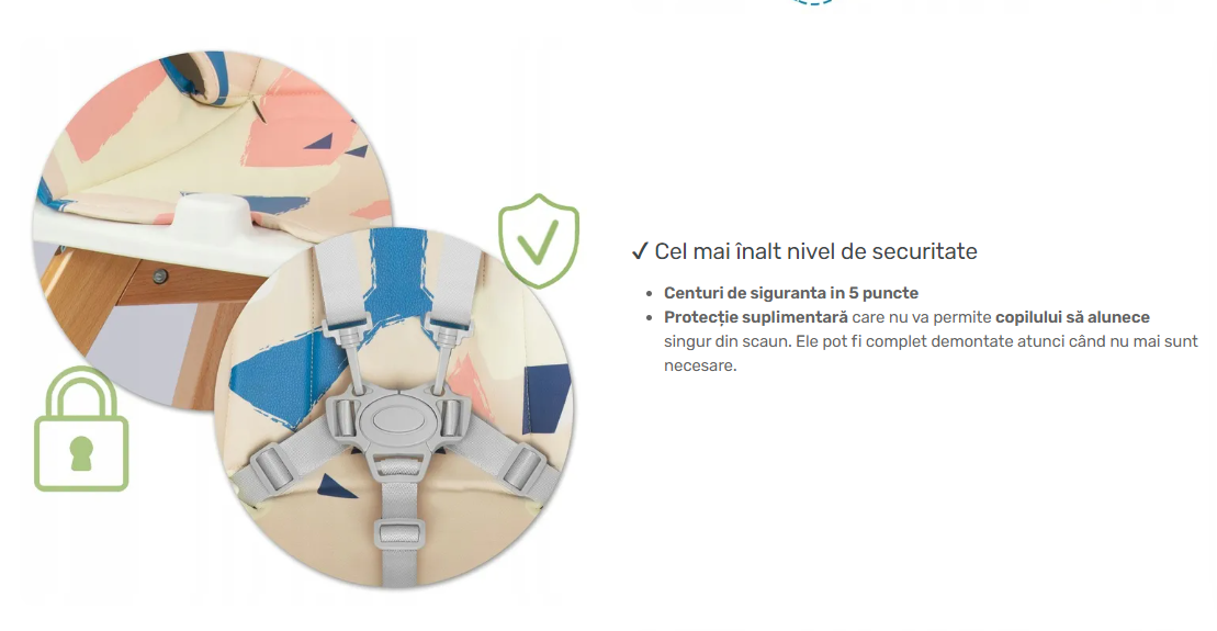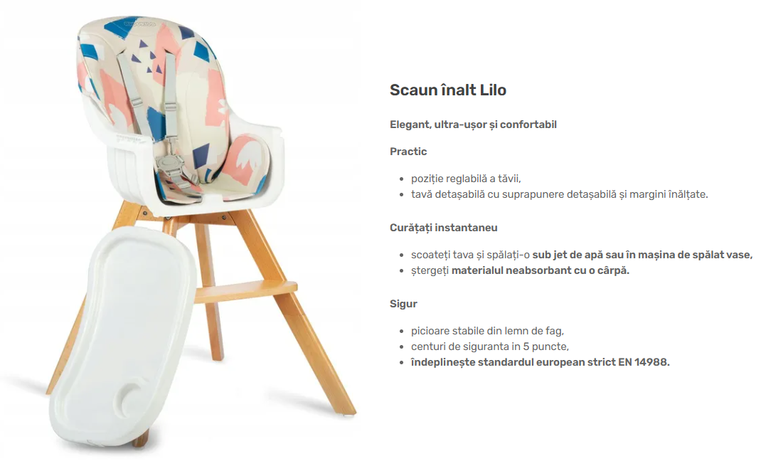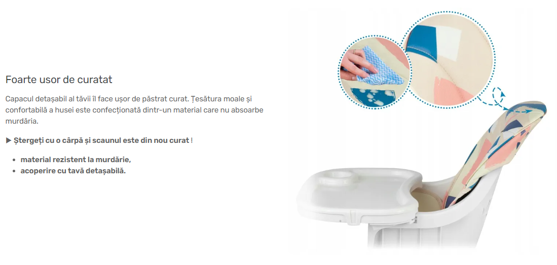 | Caracteristici cheie: | 1 x Tavita detasabila, Centura 5 puncte, Anti-alunecare, Husa detasabila, Husa lavabila, Suport pahar, Multifunctional |