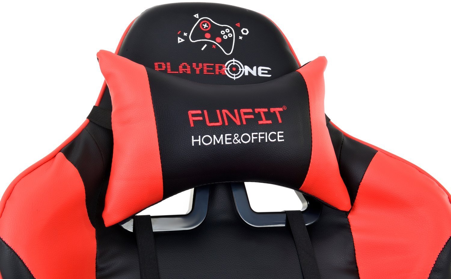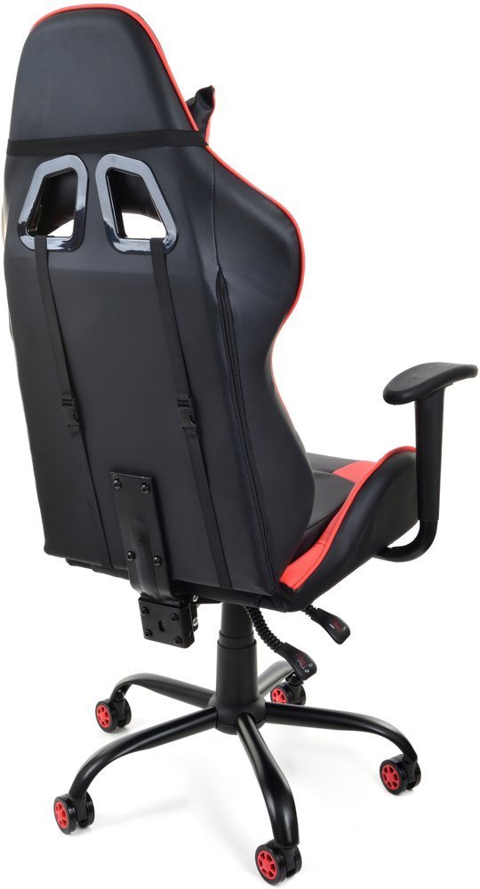Acest scaun de birou este echipat cu un spatar confortabil si un sezut foarte moale. In plus, acest scaun de birou pentru gaming are si cotiere extra lata. Scaunul este acoperit cu piele ECO de culoare neagra si rosie. Cu perne de sustinere suplimentare pentru gat si spate.