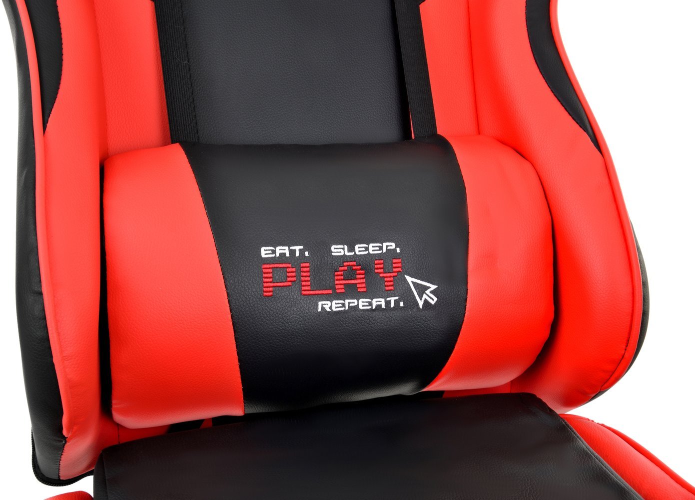 Scaun Gaming „LikeSmart PLAY!”, 2 Perne de Sustinere pentru Gat si Spate, Reglare Spatar, Piele ECO, Inaltime reglabila, Negru/Rosu