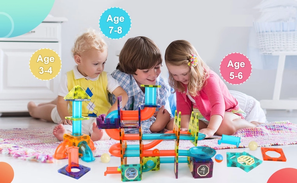 【Blocuri cu magneti pentru trasee distractive】 Design nou de actualizare, placi magnetice + tevi de marmura + minge colorata care se rostogoleste rapid in sus si in jos prin pista. Usor de asamblat si demontat. De asemenea, copiii pot construi o forma 3D mica, explorati posibilitati nesfarsite.
