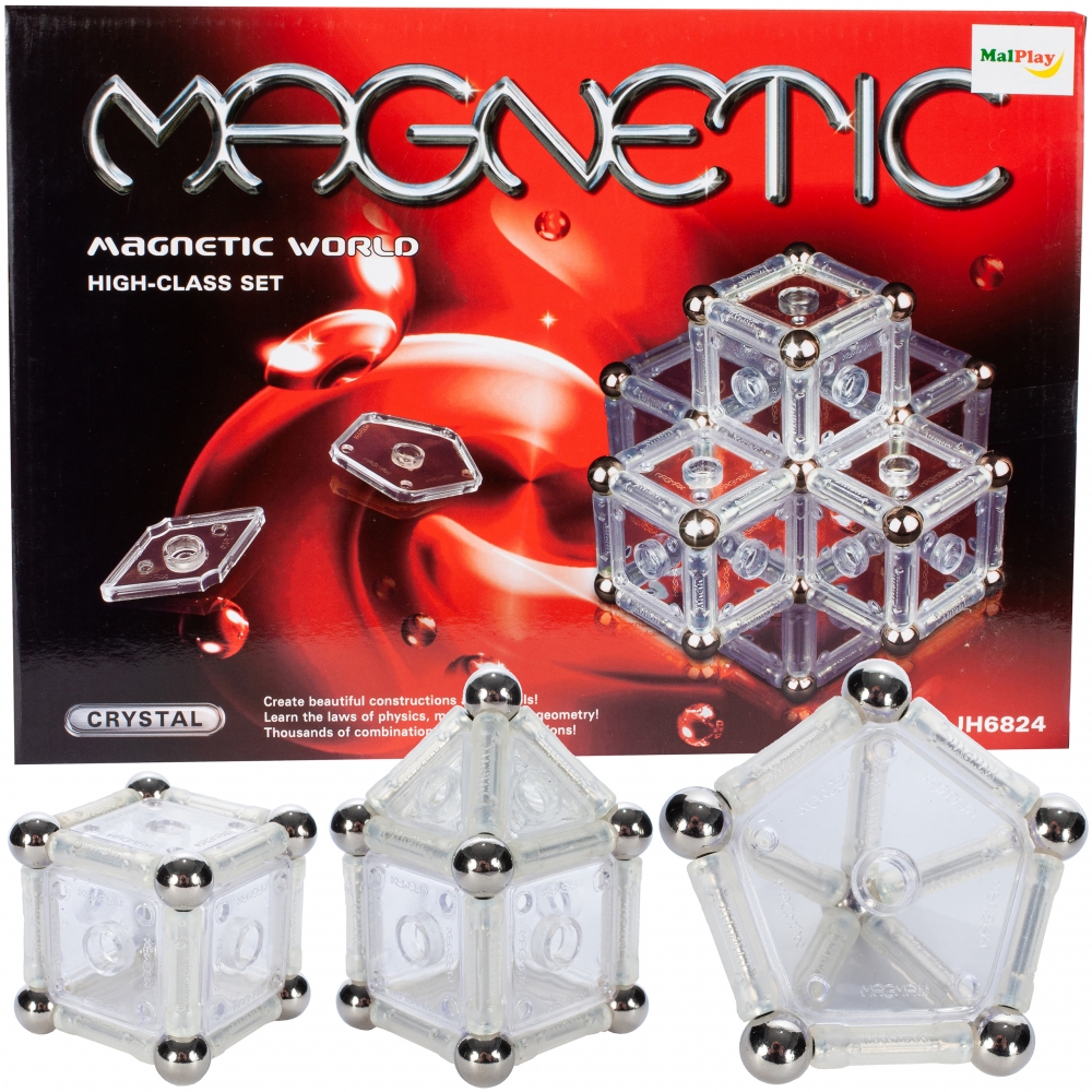 Set Inteligent de Constructie Magnetic cu 84 Piese, Educativ si Creativ, „MAGNETIC WORLD HIGH-CLASS”, Numeroase Posibilitati de Construit Creativ, Dezvoltarea Abilitatilor Motrice si a Imaginatiei