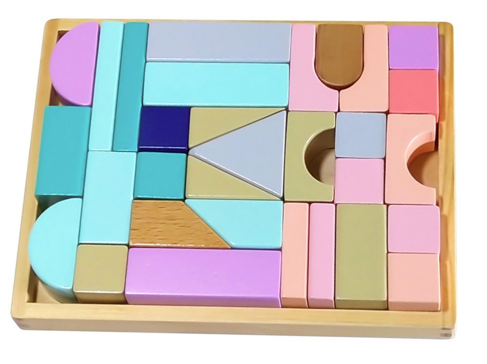 Set Piese din lemn de sortat „ISP ECOTOYS” fara margini ascutite, Blocuri din Lemn, Cutie Depozitare, 29 piese