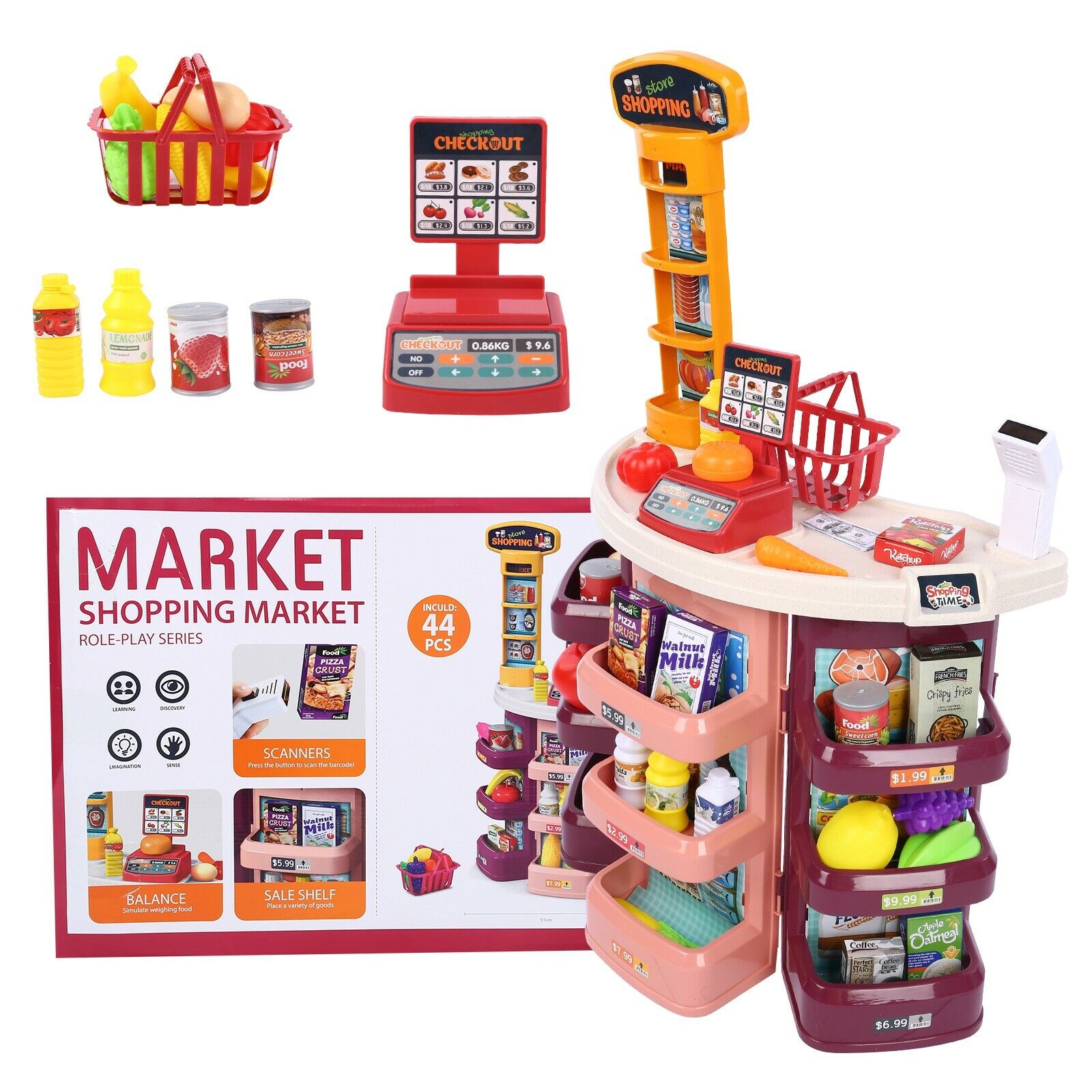 Supermarket, cu lumini si sunete + accesorii, pentru fete si baieti, 51x27x78 cm, 44 piese